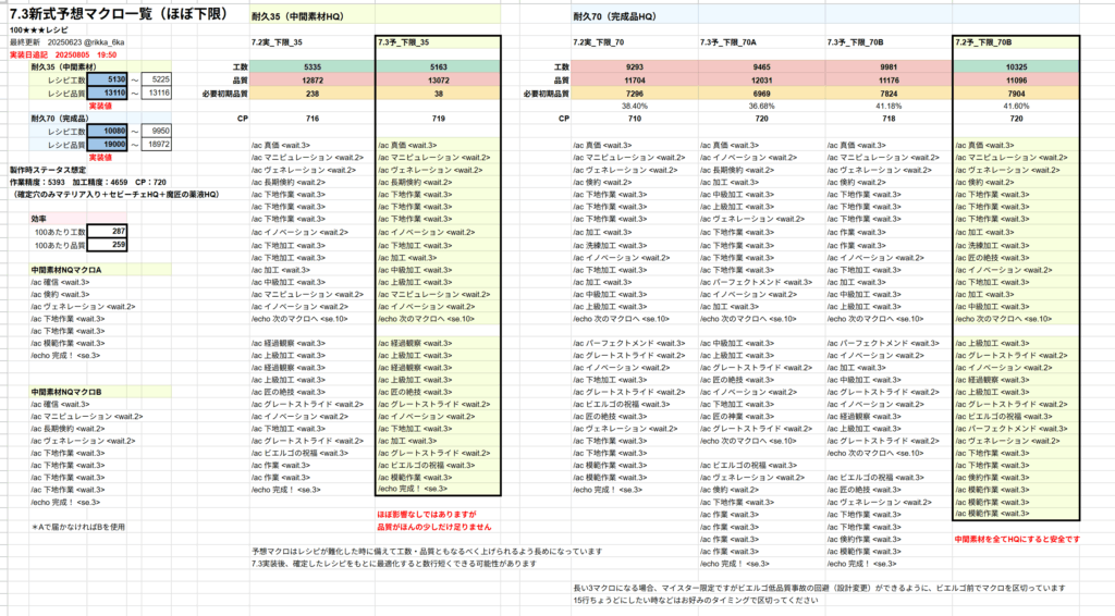 異なるステータスで製作を行う場合は、事前に製作練習でマクロが正しく動作するかご確認ください。