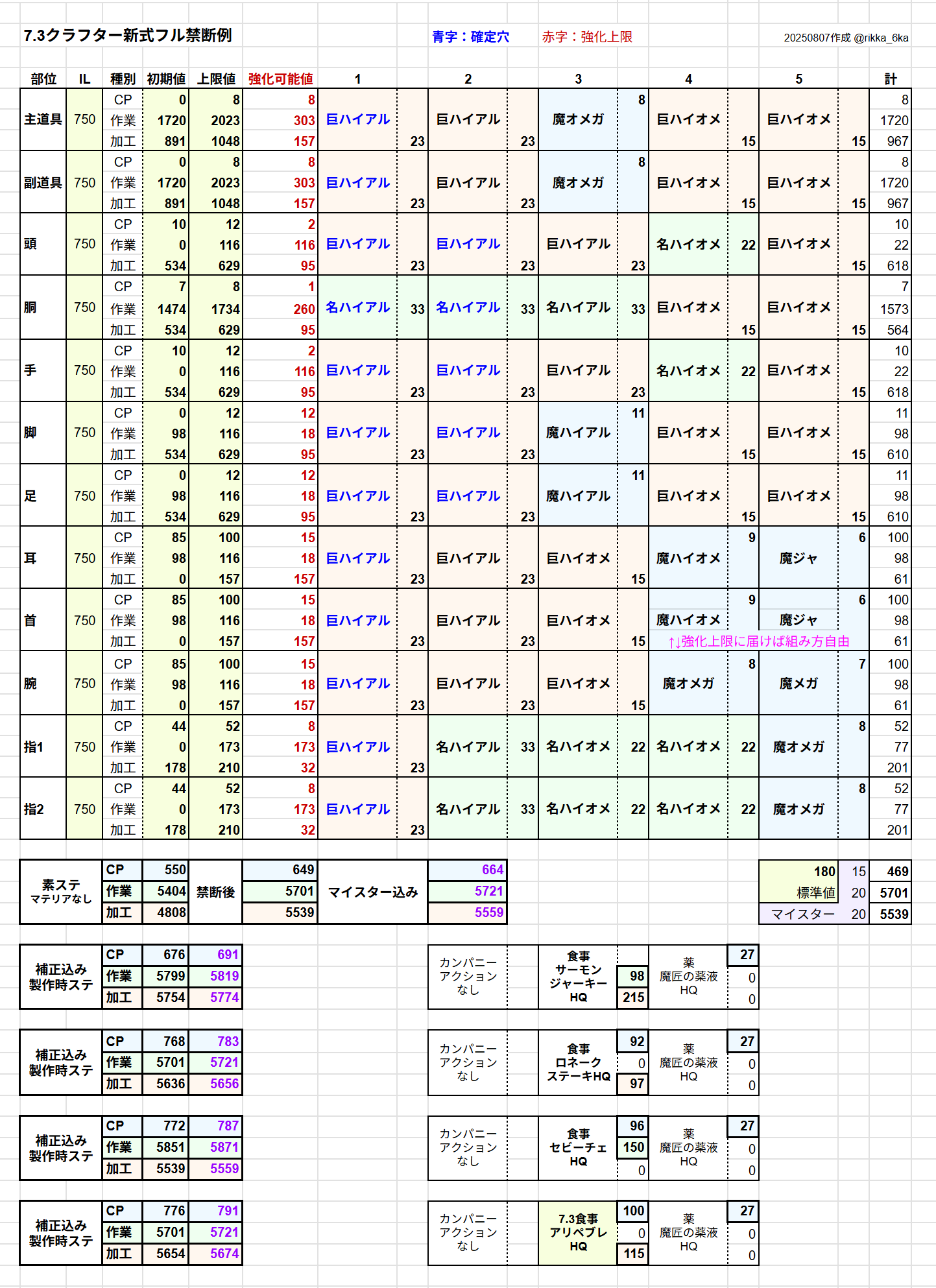 【7.31】コスモエクスプローラー:クラフター情報シート(随時更新)