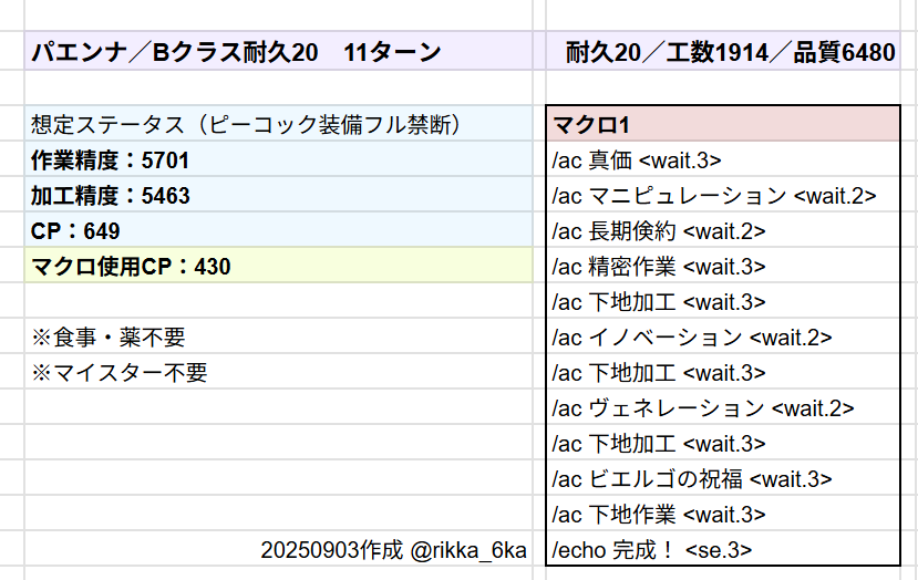 レシピ:耐久20/工数1914/品質6480