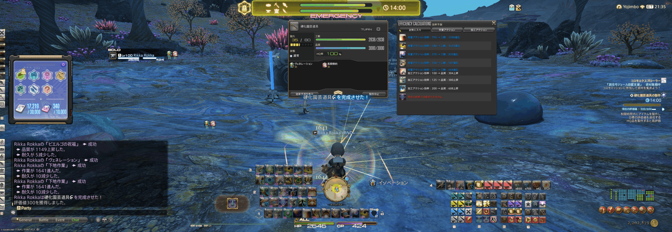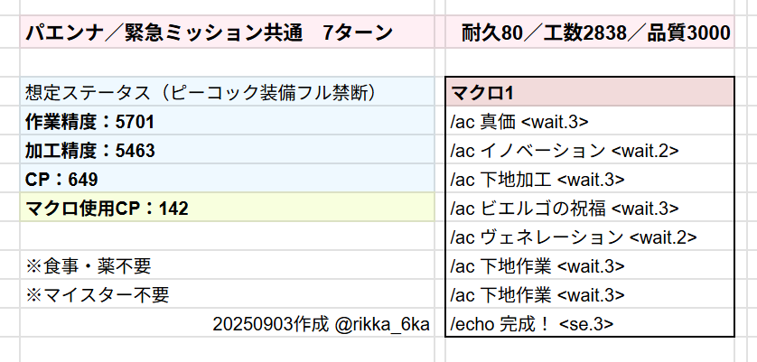 7ターンなのは変わらず、マクロの途中で「低品質」が出ても100%HQで完成します。