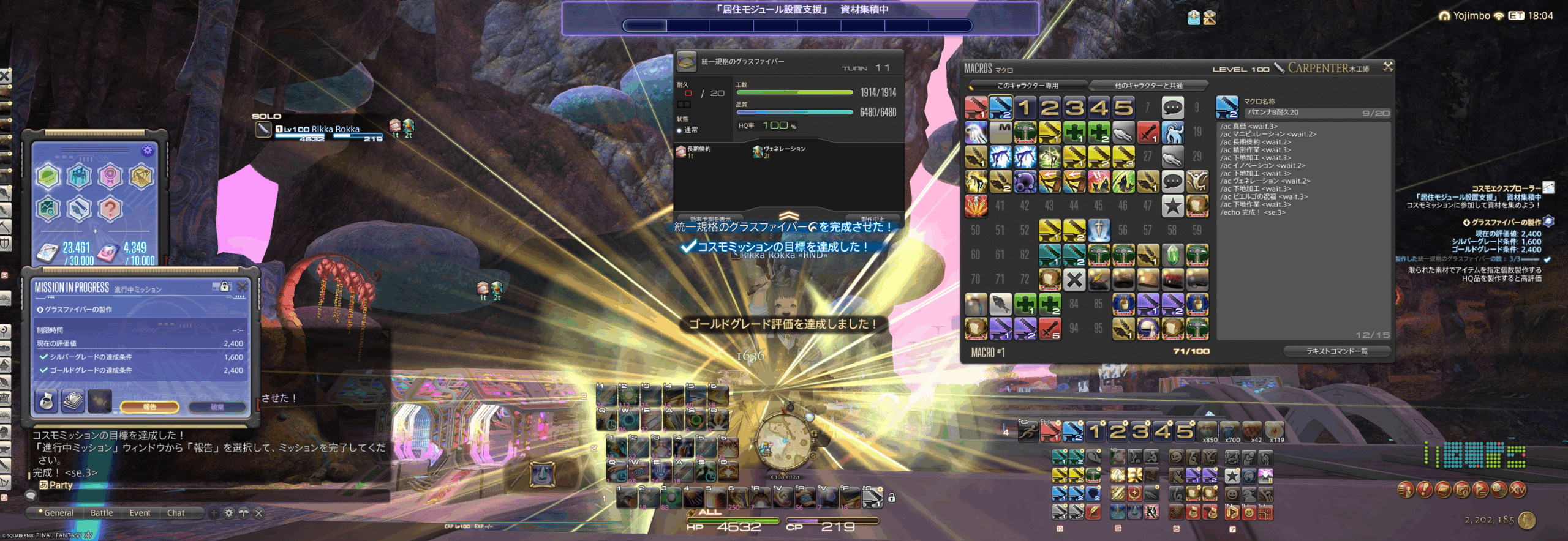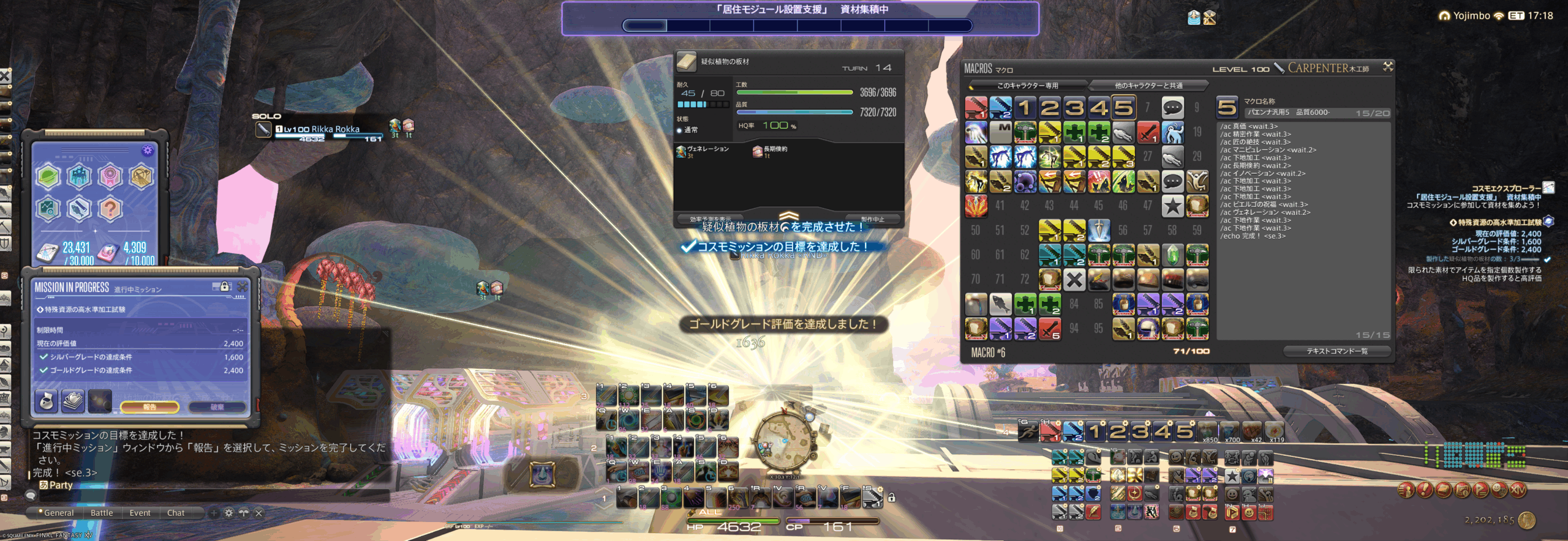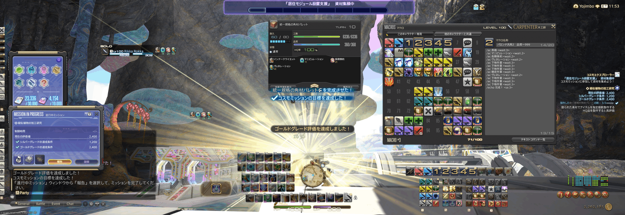 この記事では、レベル100・ゴールデンサム/ピーコック装備フル禁断のステータスでの【コスモツール製作】【ミッションコンプリートのアチーブメント取得】を目的とし、7.31現在実装済みのすべてのB・C・Dクラスミッション用製作マクロを掲載しています。