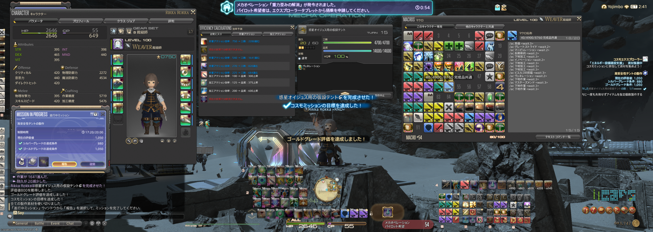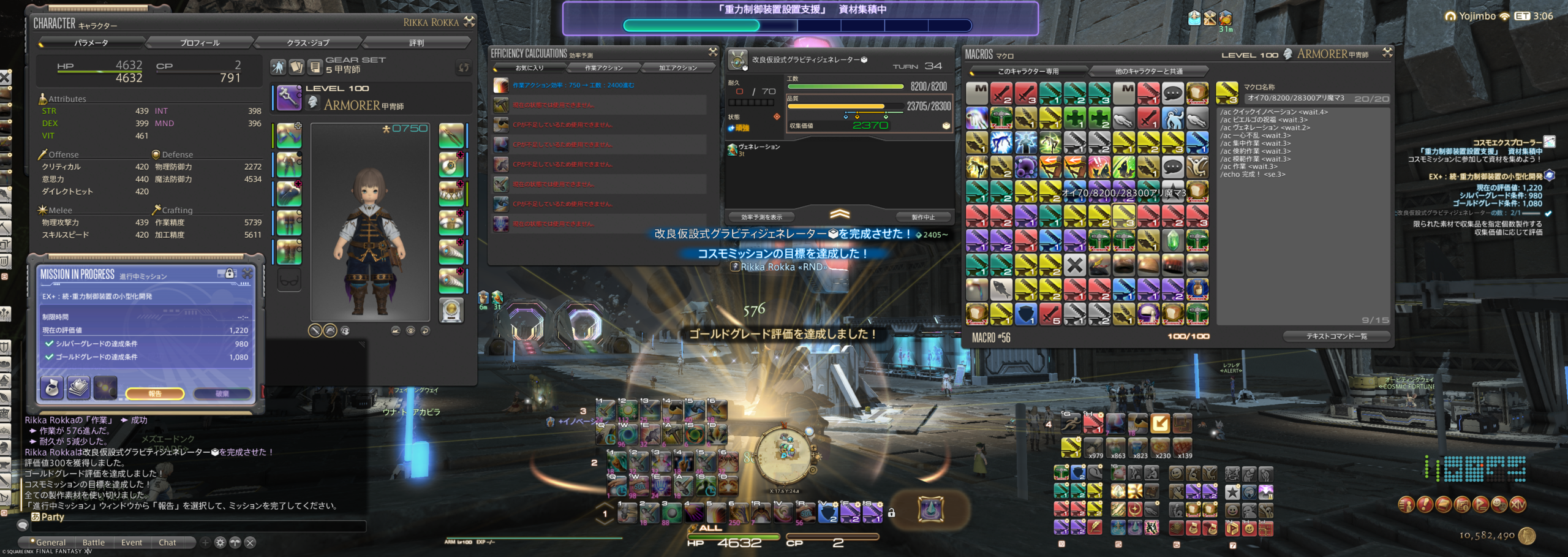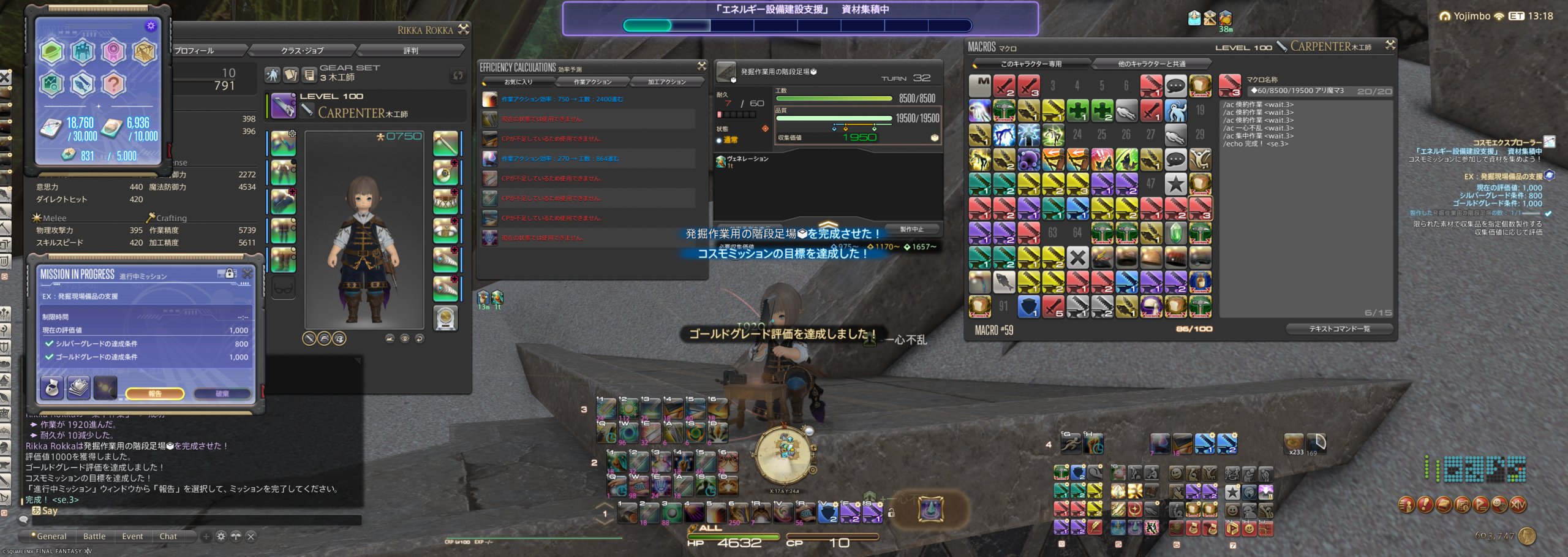 特にEX+ミッションには完全なマクロ化が難しいレシピもありそうですが、マイスターがあることで使える手数が増え、製作がひとまわり以上楽になります。