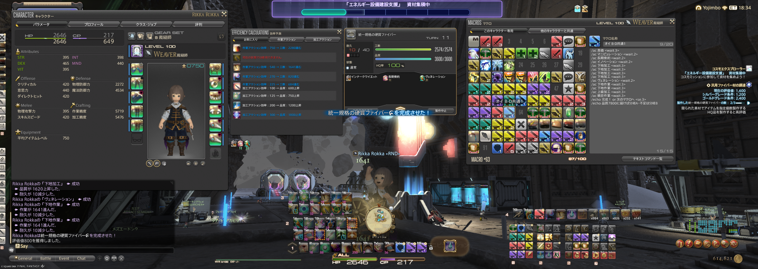 このマクロでは、状態変化の恩恵を受けなかった場合は品質最大にはなりません。想定ステータスでの製作時は品質21099/22600まで上がります。
