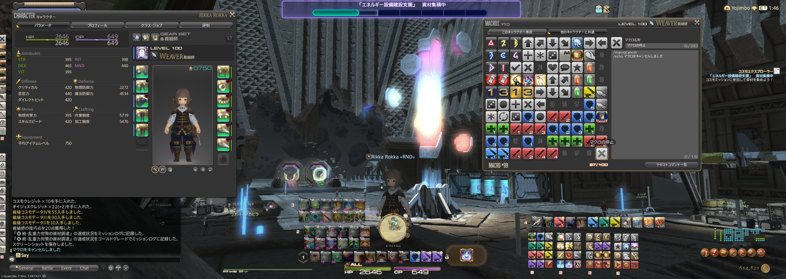 掲載マクロは7.3新式フル禁断+(あれば)コスモツール+マイスター+食事+薬の完全装備で使うスタイルになっています。